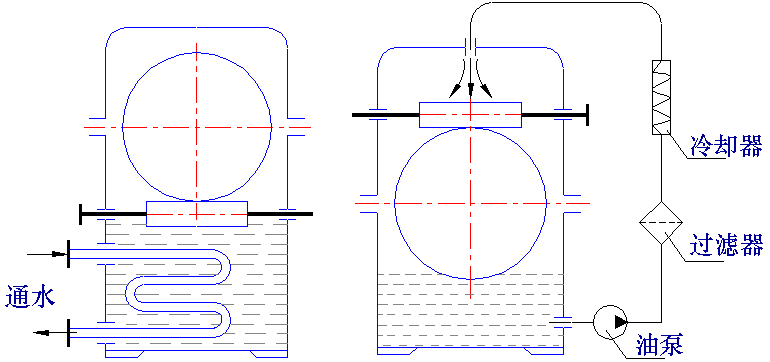 如果采用喷油润滑,喷油嘴要对准蜗杆啮入端;蜗杆正反转时两边都要装有喷油嘴,而且要控制一定的油压。