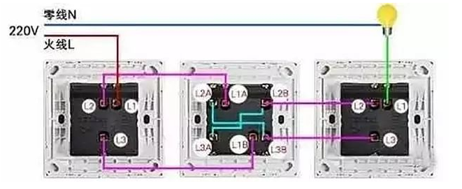 三开单控-----适用于同一位置开关控制三个不同位置的灯