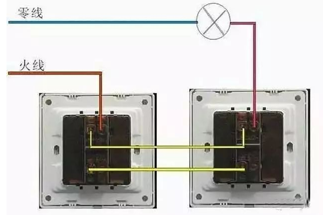 双开双控:适用于两个不同位置控制一个灯