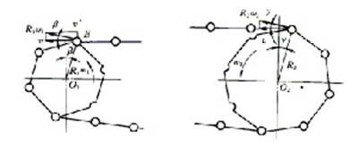 从动链轮由于链速v≠常数和γ角的不断变化(图9),因而它的角速度ω2=v/R2cosγ也是变化的。