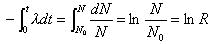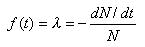 式中f(t)称为失效率,负号表示dN的增大将使N减小。分离变量并积分,得: