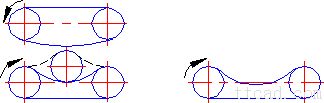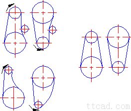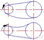 两轮轴线在同一水平面,松边应在下面,否则下垂量增大后,松边会与紧边相碰,需经常调整中心距 i、a为任意值