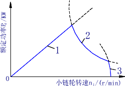 链条节距P可根据功率P0和小链轮转速n1由额定功率曲线选取。